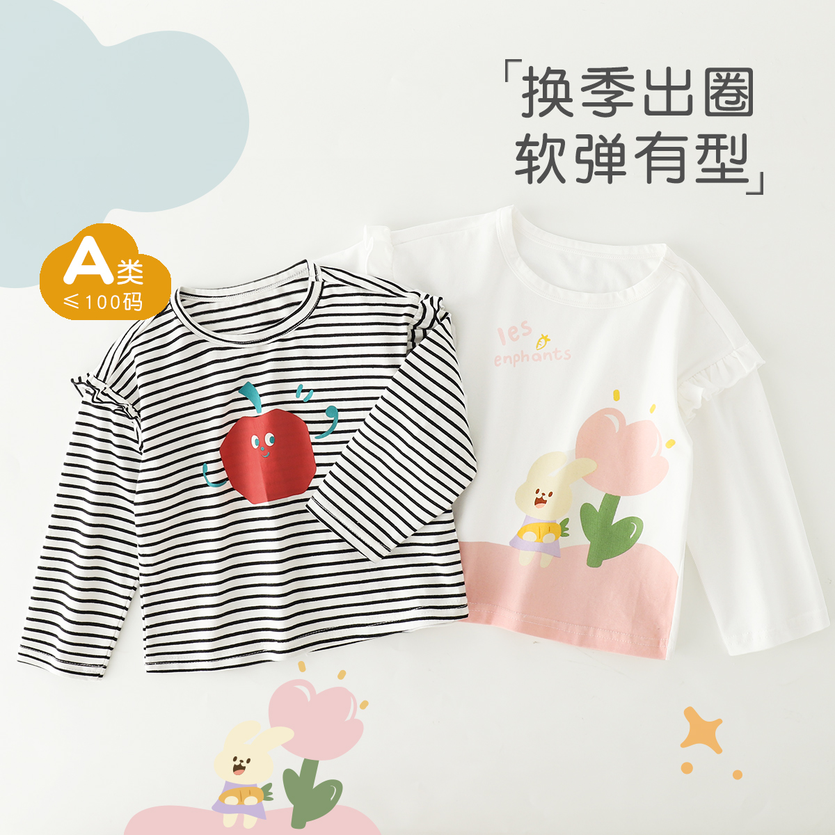 纯棉女宝宝秋季 儿童打底衫 外穿衣服 t恤上衣春秋款 丽婴房女童长袖