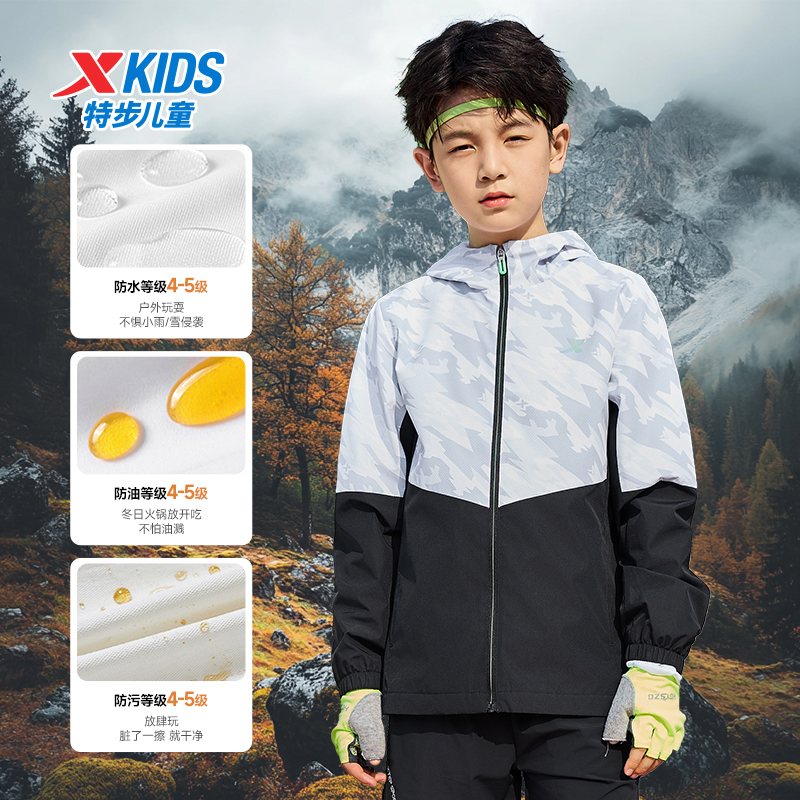 秋装 三防儿童运动风衣薄款 跑步上衣女童 男童外套春秋新款 特步童装