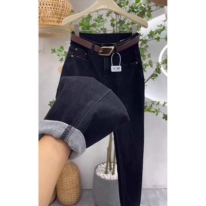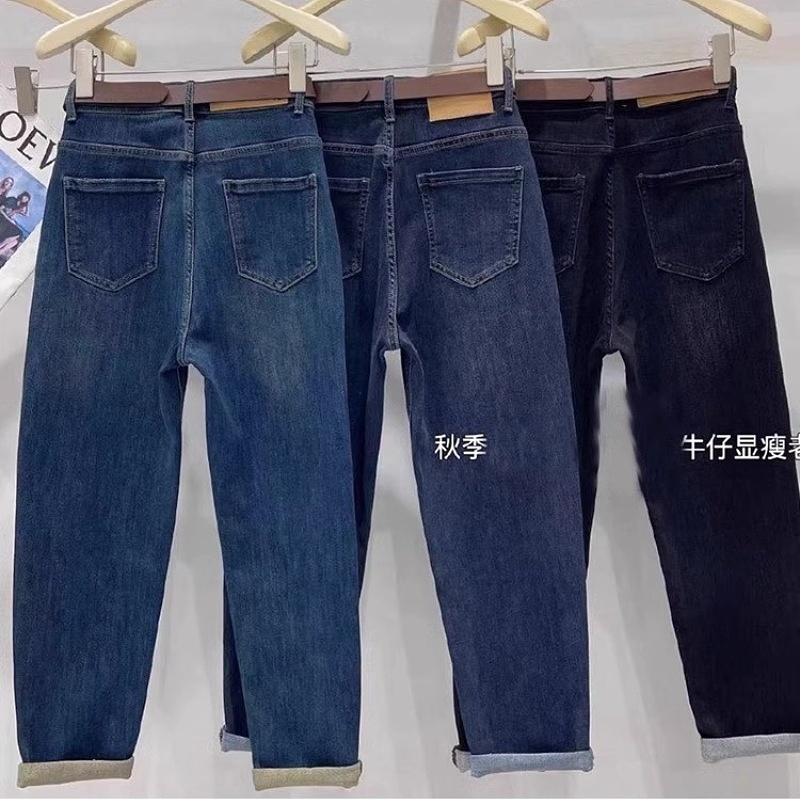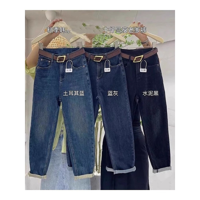 胖mm高腰显瘦梨形身材老爹裤 2024年秋季 女大码 直筒哈伦牛仔裤 新款