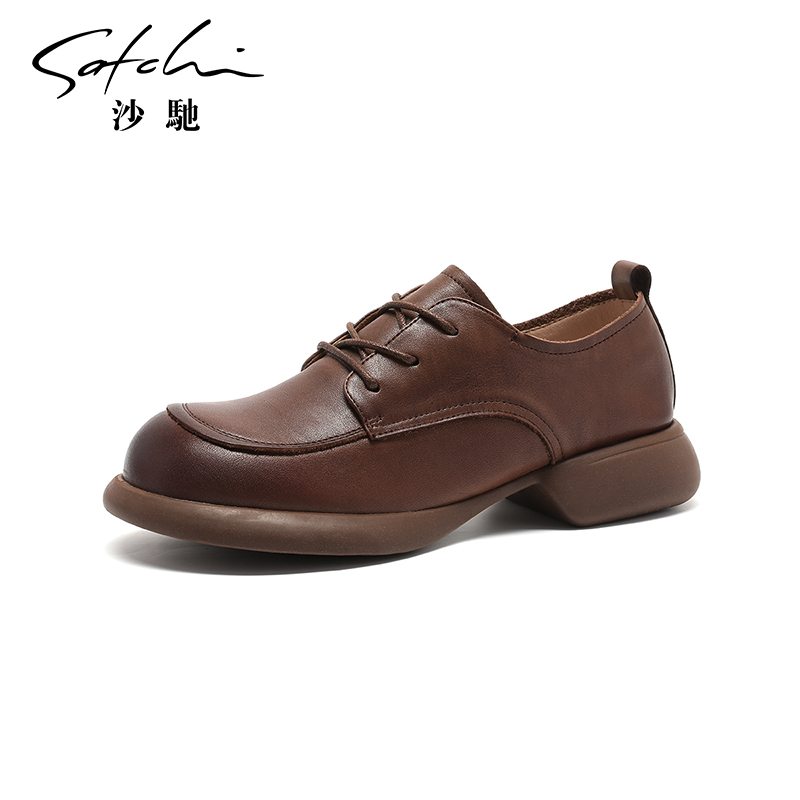 系带低粗跟通勤鞋 舒适英伦风乐福鞋 JK小皮鞋 春秋新款 单鞋 沙驰女鞋