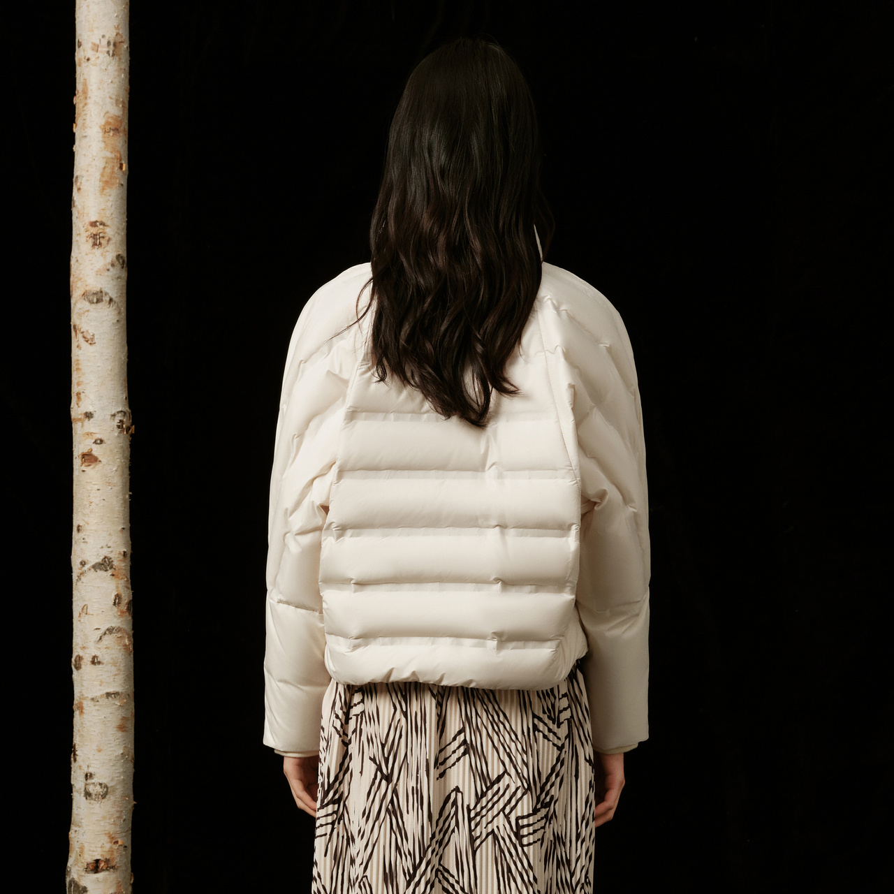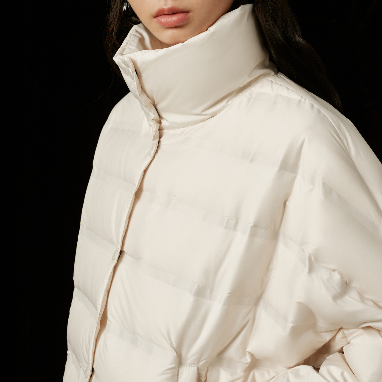 IMM尹默冬460T条高密棉感涤纶消光丝90白鹅绒短款 羽绒服女