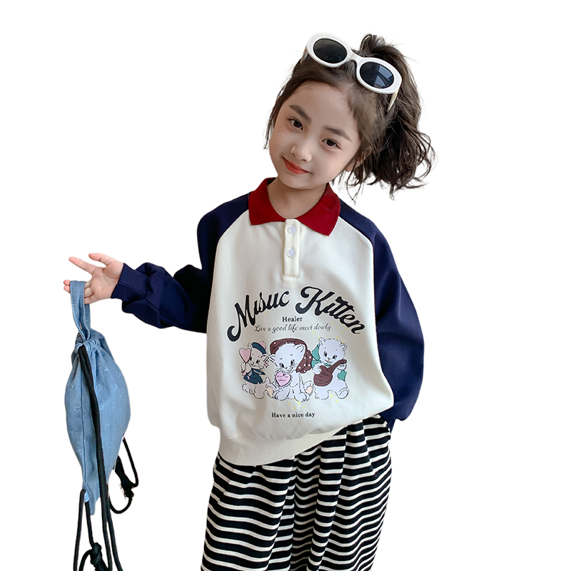 绒衫 棉质舒适大廓形图案圆领长袖 1195824 卫衣秋季 HM女装