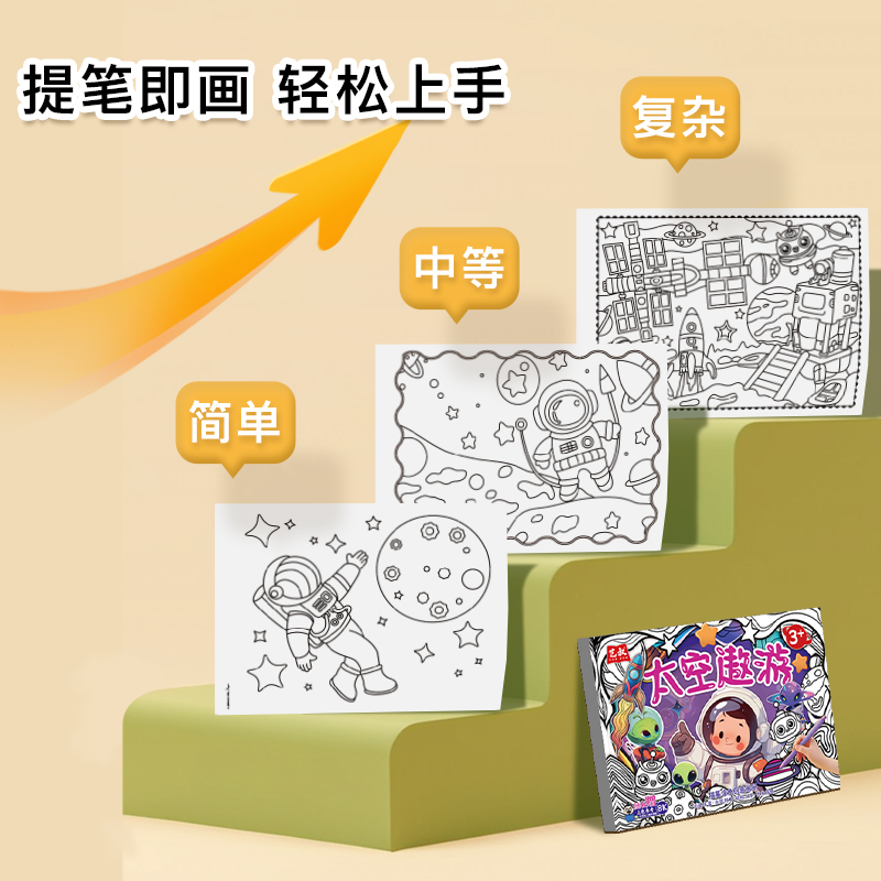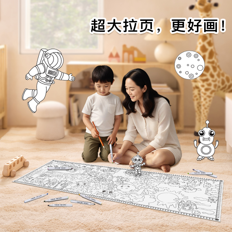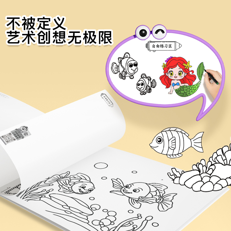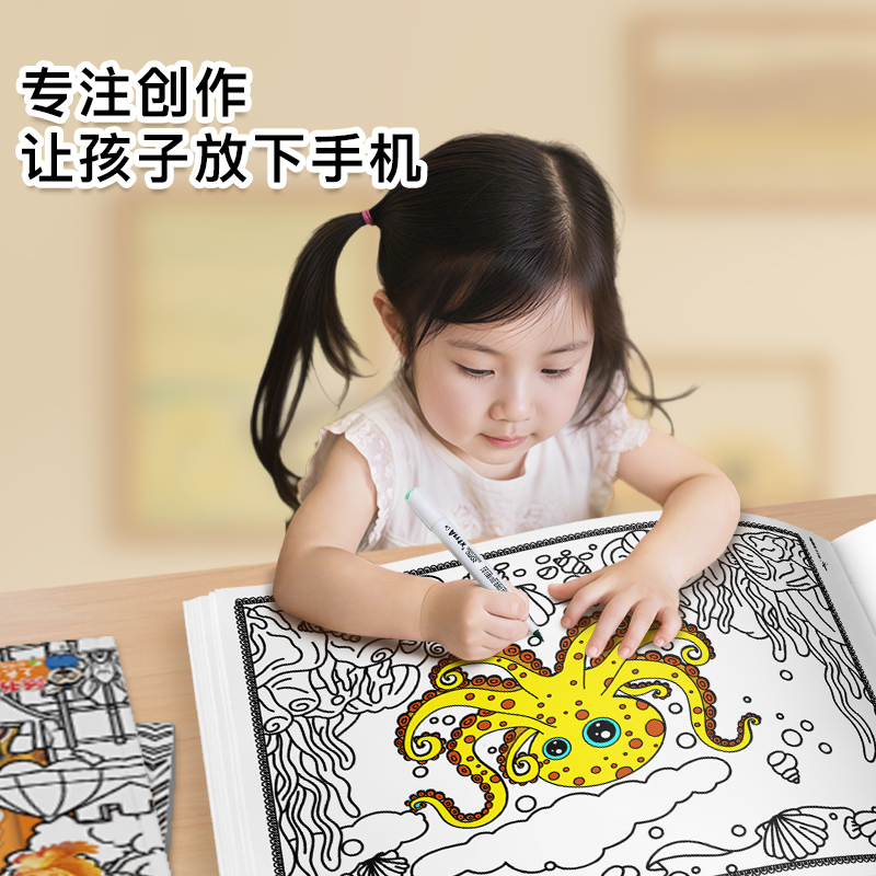 8开尺寸超大拉页益智填色书手绘本 4大主题动物海洋男孩女孩漫画线稿画册 儿童创意描摹涂色本 幼儿趣味启蒙动漫DIY涂鸦临摹绘画本