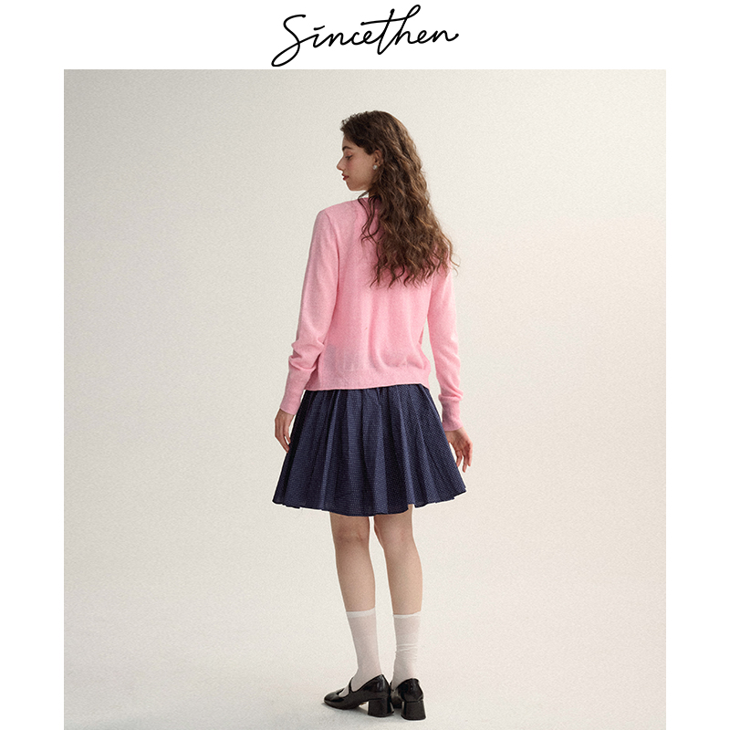 Eland衣恋半身裙女百褶中长裙休闲裙 可机洗羊毛