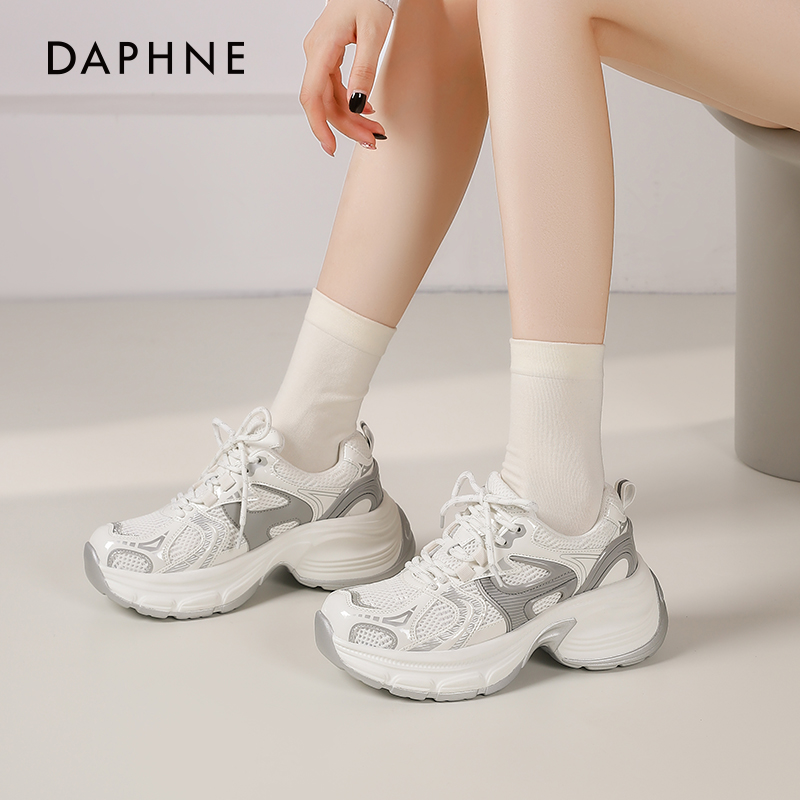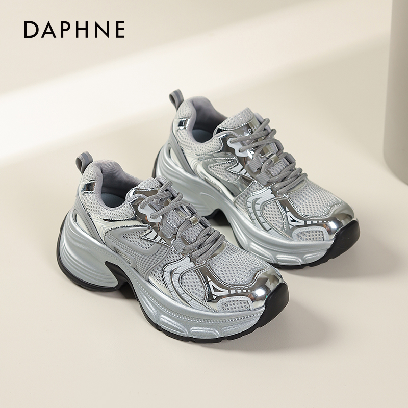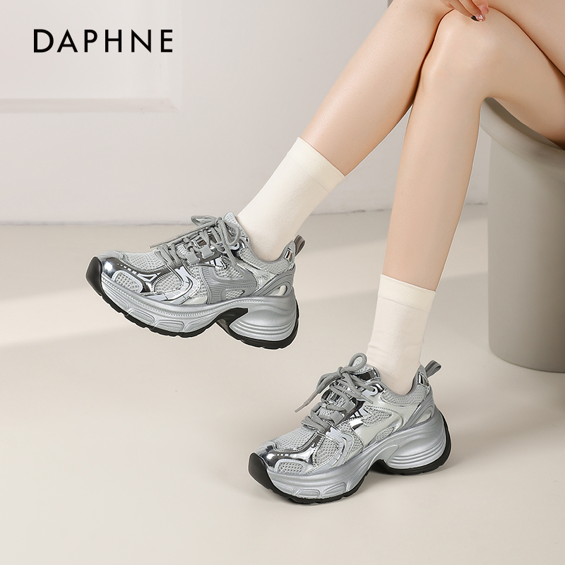 休闲鞋 达芙妮银色老爹鞋 百搭运动鞋 春秋厚底增高女鞋 女 女2025新款