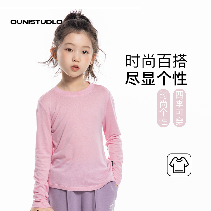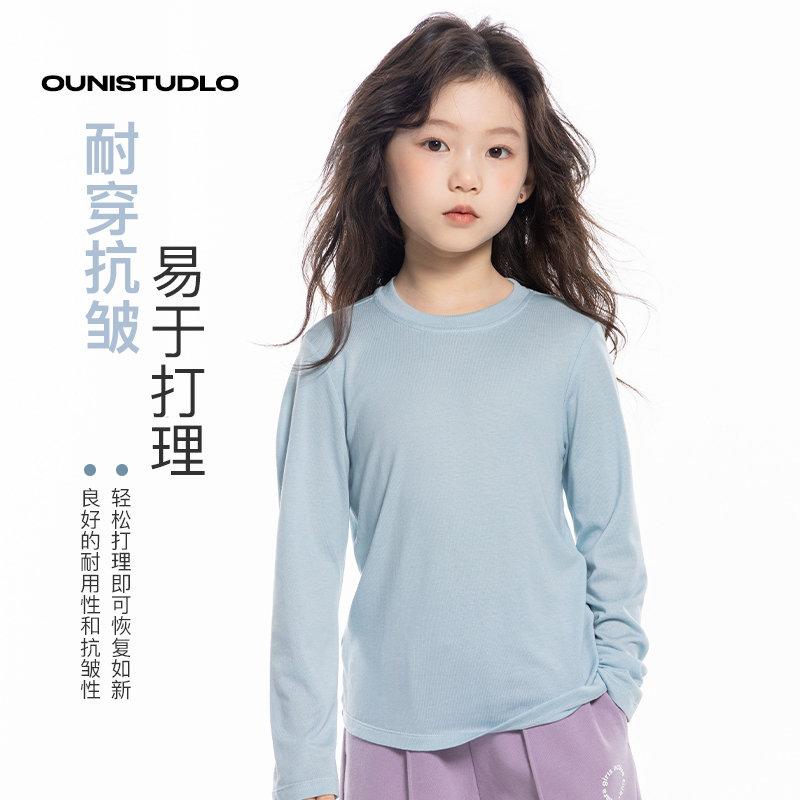 百搭圆领打底衫 女童莱赛尔长袖 儿童弹力修身 新款 上衣 T恤2024秋季