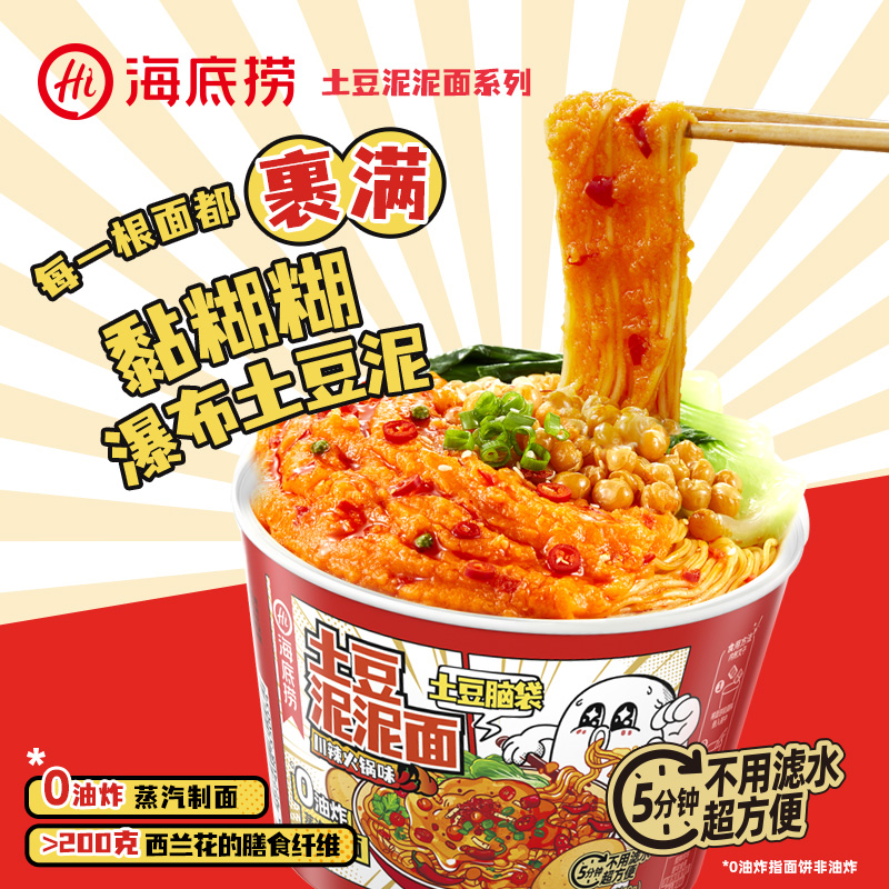 海底捞土豆泥拌面孜然麻辣火鸡面火锅非油炸速食桶装 即食冲泡免煮