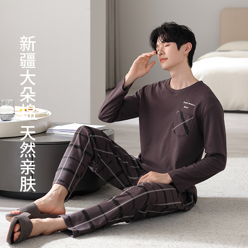 2025年长袖 新款 休闲男式 男士 家居服套装 春秋季 大码 睡衣纯棉春秋款