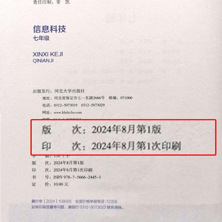 2024河大版 社信息技术计算机 信息科技七年级初中初一课本教材教科书7年级上下册河北大学出版