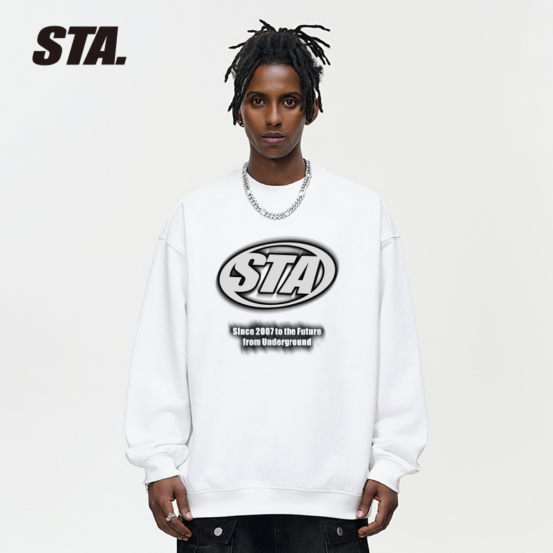 STA国潮logo设计图案重磅圆领卫衣男女春秋衣服情侣美式 运动外套