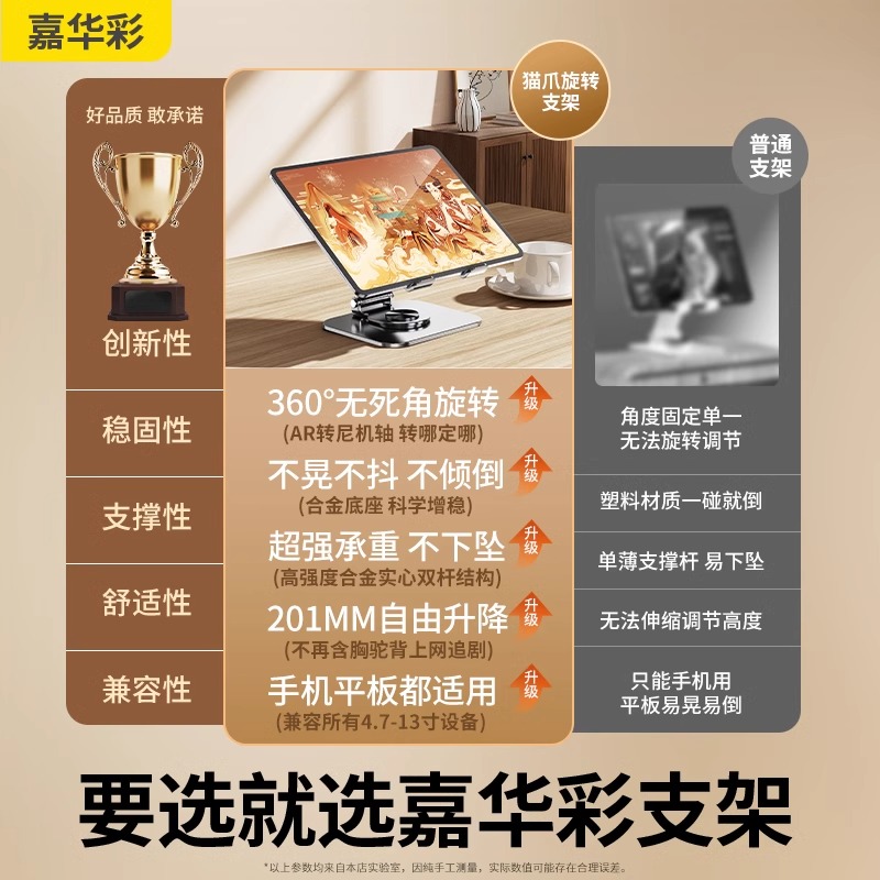 无极旋转 铝合金属架子 手机支架桌面懒人专用平板电脑ipad支撑架直播视频追剧多功能通用便携2023新款