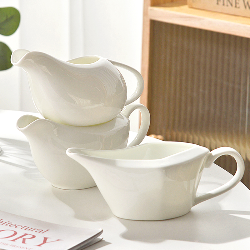 纯白陶瓷汁斗西餐餐具尖嘴杯牛排酱汁盅奶壶奶盅奶缸沙拉酱调味壶