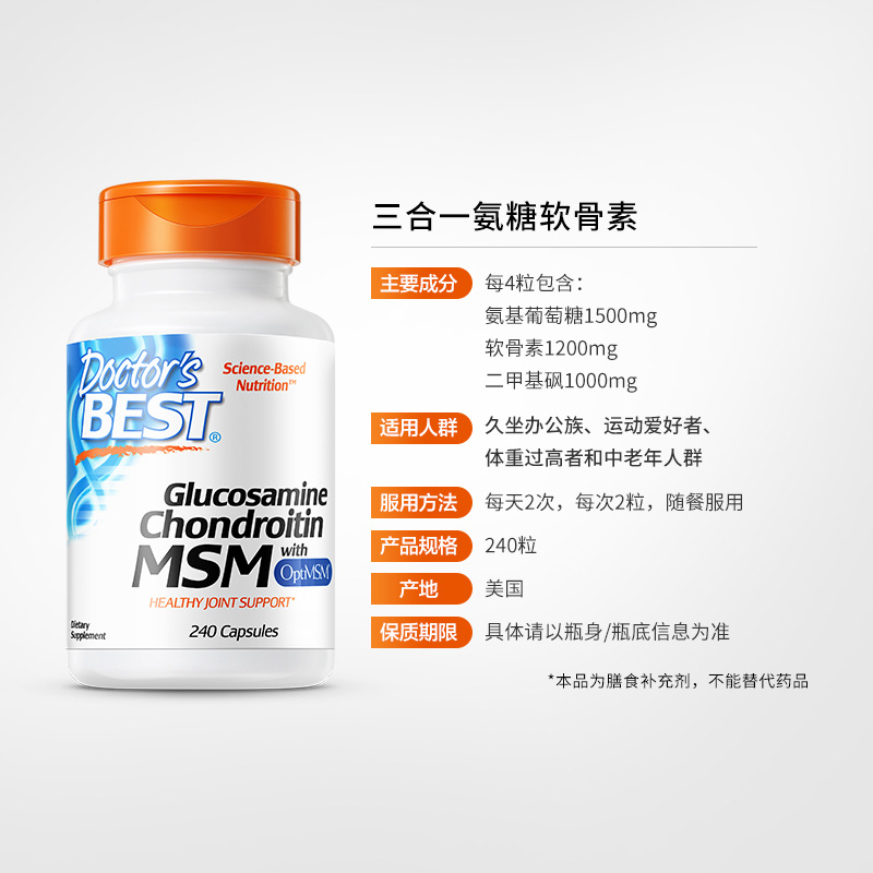 多特倍斯三合一氨糖软骨素维骨力美国进口关节保护240粒 自营