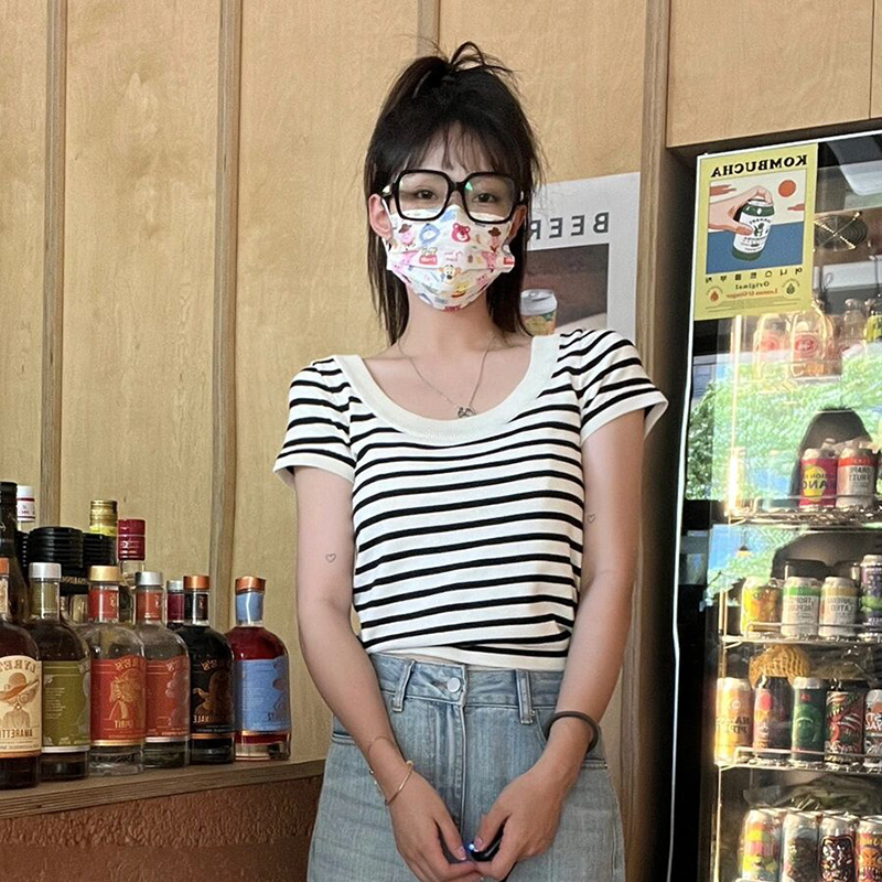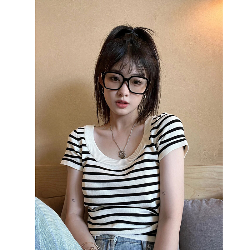 针织衫 条纹短袖 长袖 开衫 毛衣外套 RARN2025秋装 两件套圆领修身 新款