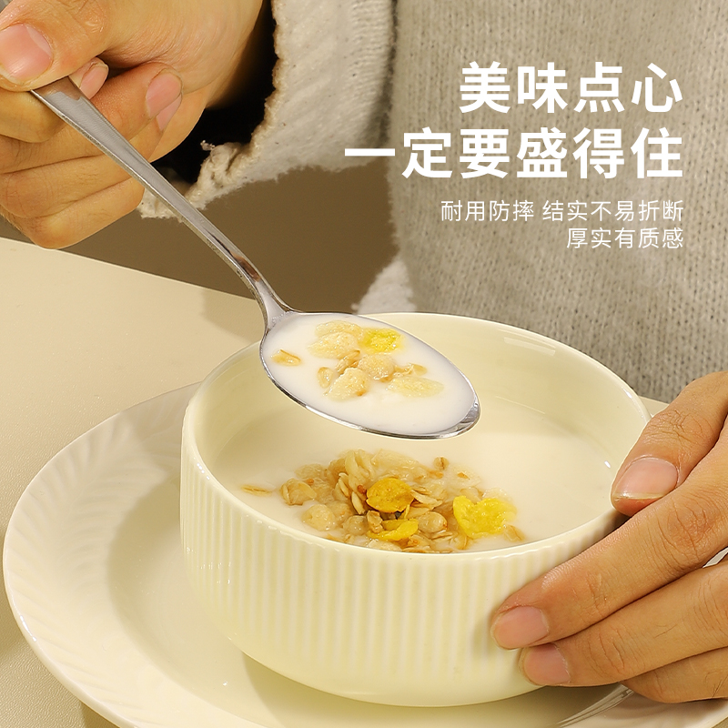 高级感304不锈钢勺子家用长柄勺吃饭勺西餐勺ins风高颜值圆勺汤勺