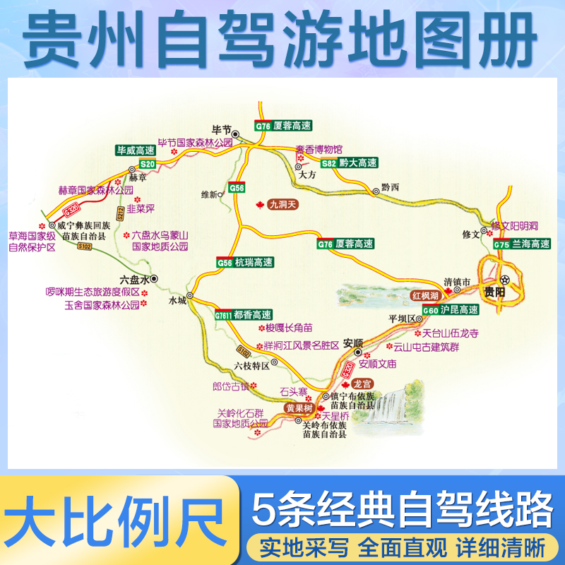 公路里程 贵州省自驾旅游交通地图册 贵州自驾游地图册 旅行规划 县道 国道 自驾游路线 含详细 贵州交通旅游地图集 2025新版