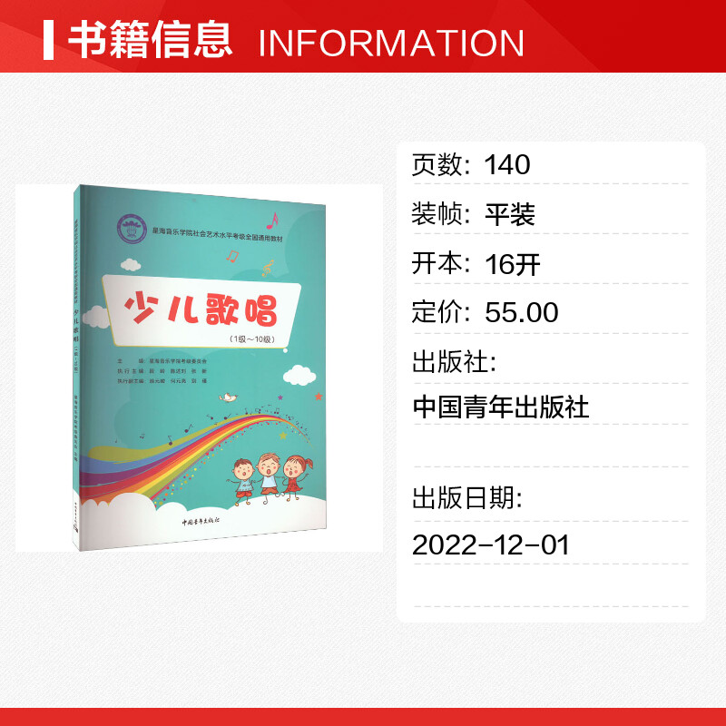 星海音乐学院社会艺术水平考级全国通用教材 少儿歌唱考级教程1 音乐考级考试书 曲谱歌曲集官方正版 少儿歌唱教程 10级一级至十级