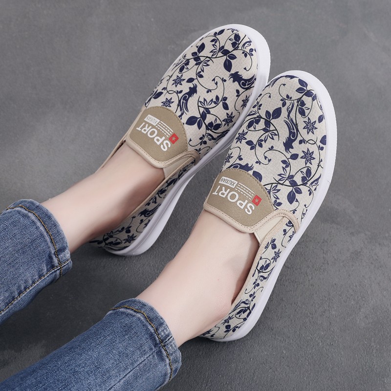 帆布平底防滑休闲一脚蹬懒人学生百搭板鞋 单鞋 女春秋季 老北京布鞋