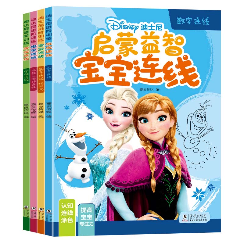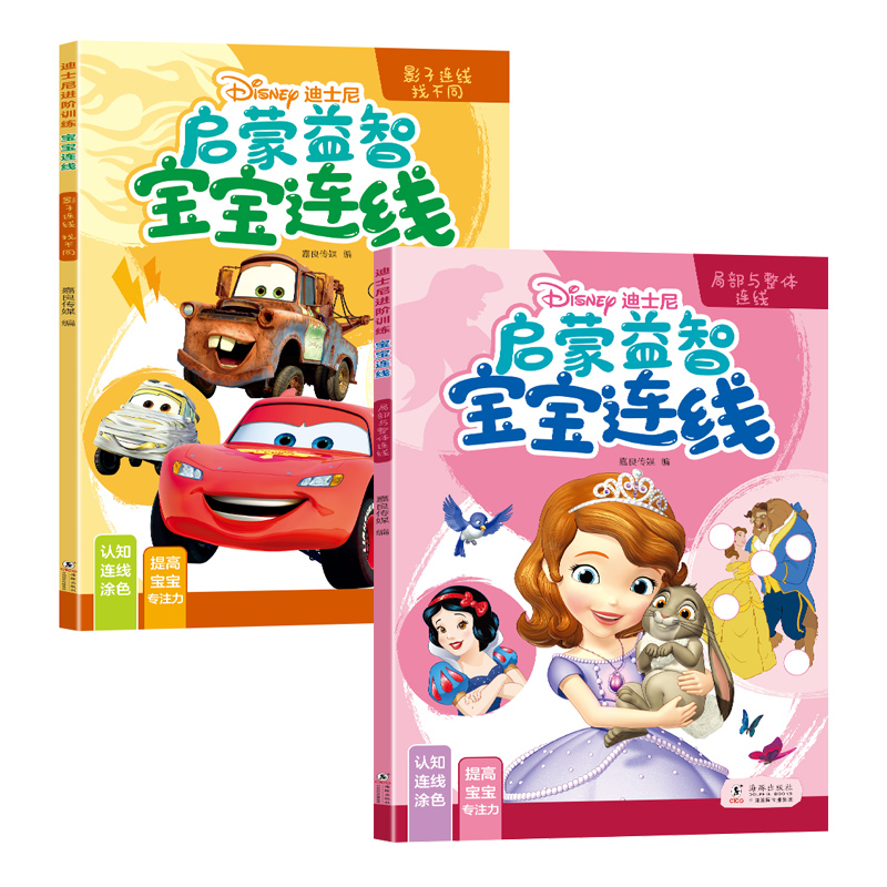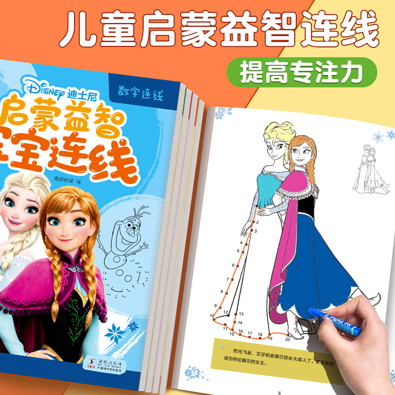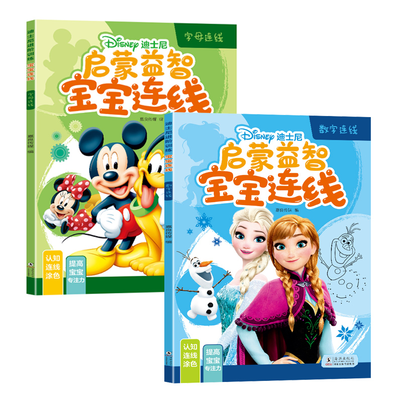 迪士尼专注力训练连线画本涂色绘本控笔练习2 正版 6岁幼儿园宝宝配对思维智力潜能开发数字幼儿全脑左右脑逻辑启蒙 赠12色蜡笔