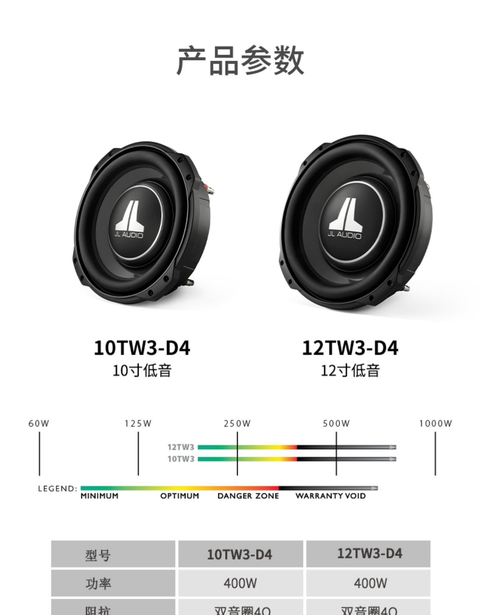 JLAUDIO捷力汽车音响TW3系列10寸12寸车载喇叭无源低音炮功放套餐