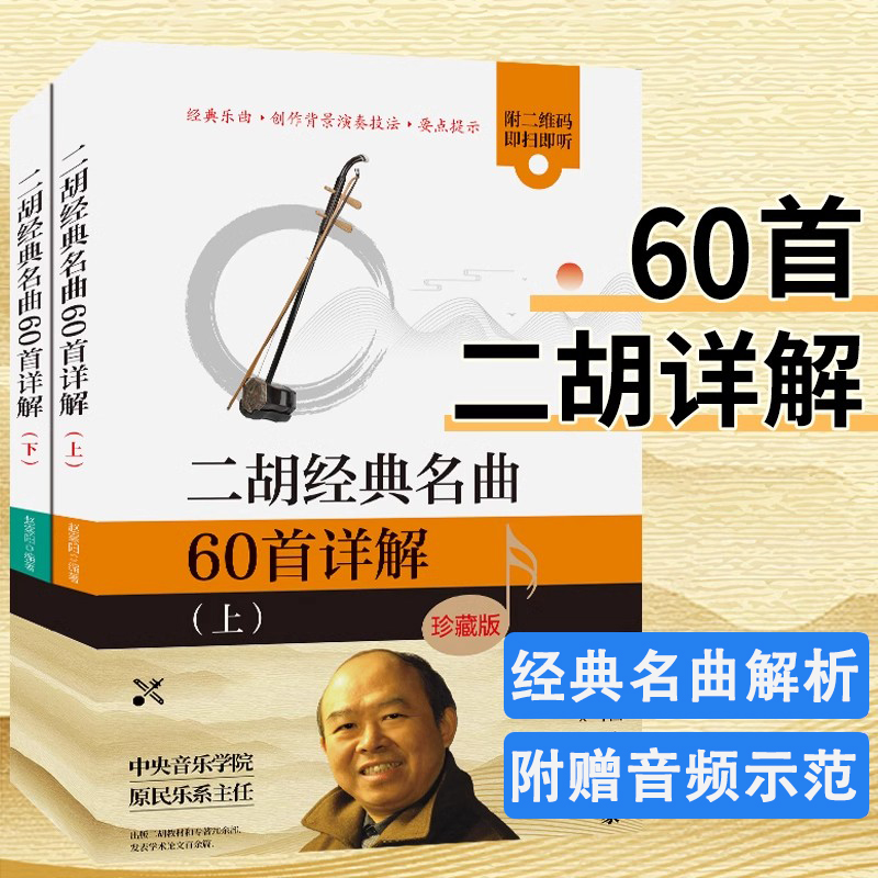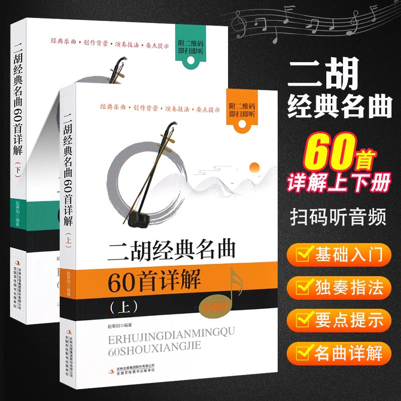 全套2册 听音频 赵寒阳二胡经典 扫维码 零基础自学入门二胡独奏指法技巧训练基本练习曲教材教程曲谱曲集书 名曲60首详解上下册 正版