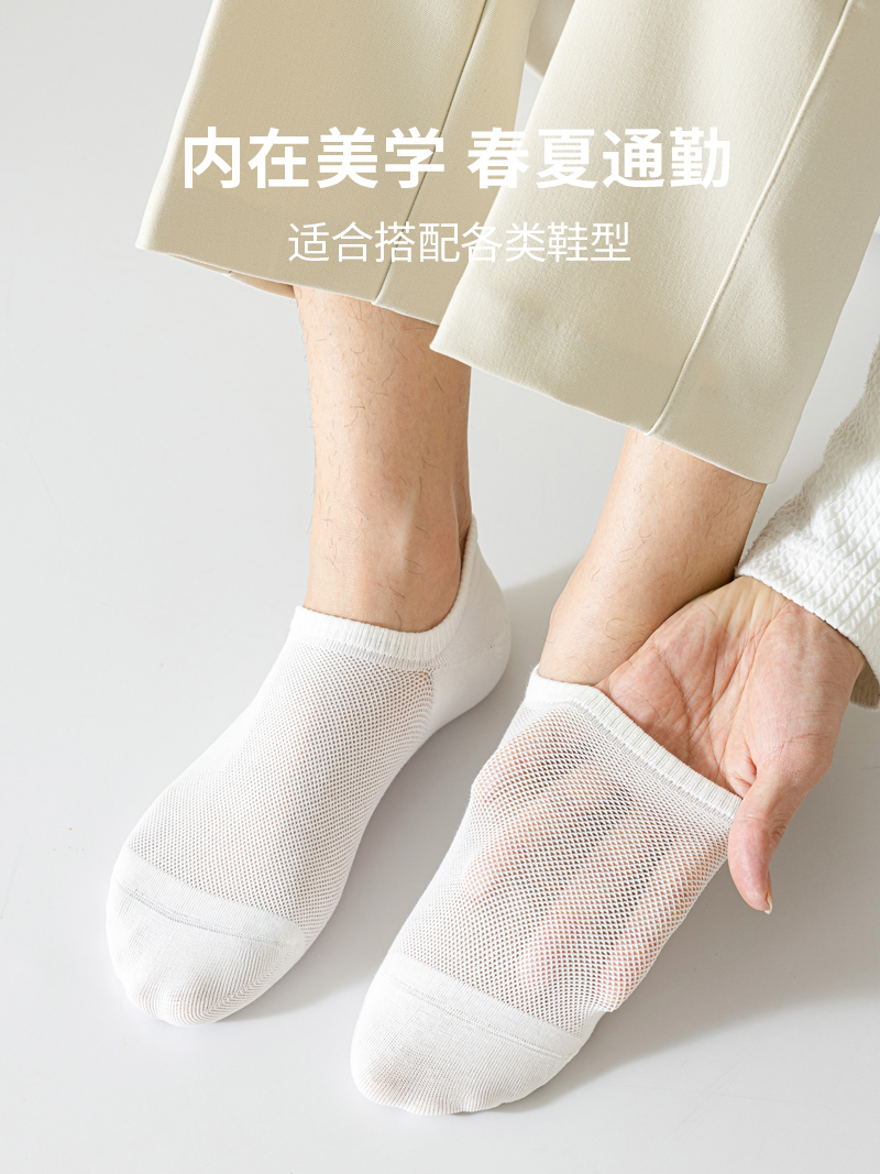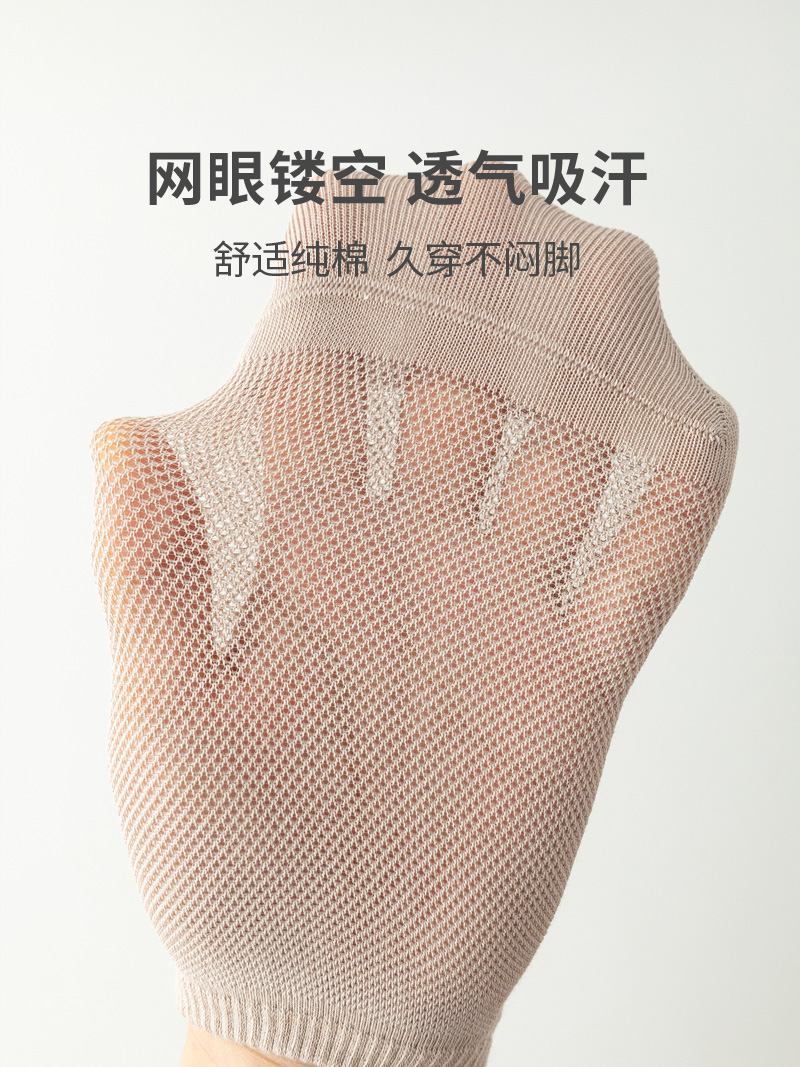 船袜男夏季 纯棉不掉跟防滑网眼浅口隐形透气抗菌夏天纯色短袜 薄款