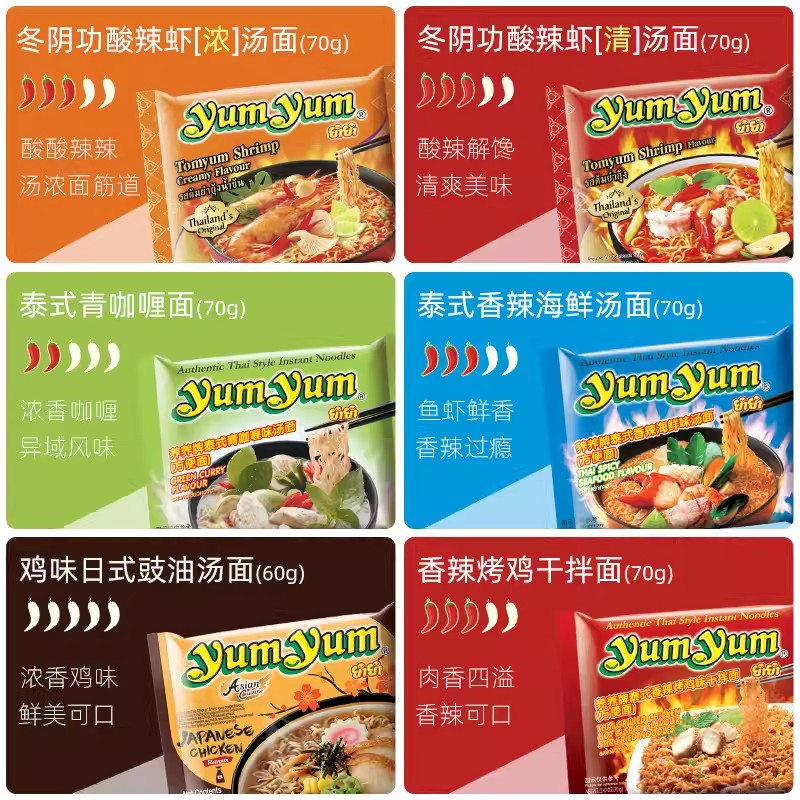 5包 泰国进口yumyum养养牌冬阴功面酸辣虾味浓汤面70g U先试吃