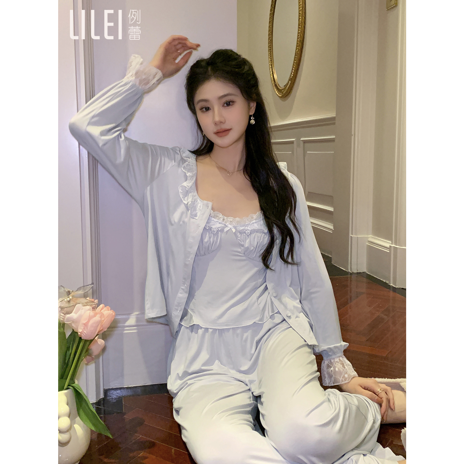 红豆柔柔棉睡衣女春秋长袖 带胸垫可外穿柔软优可丝磨毛家居服套装