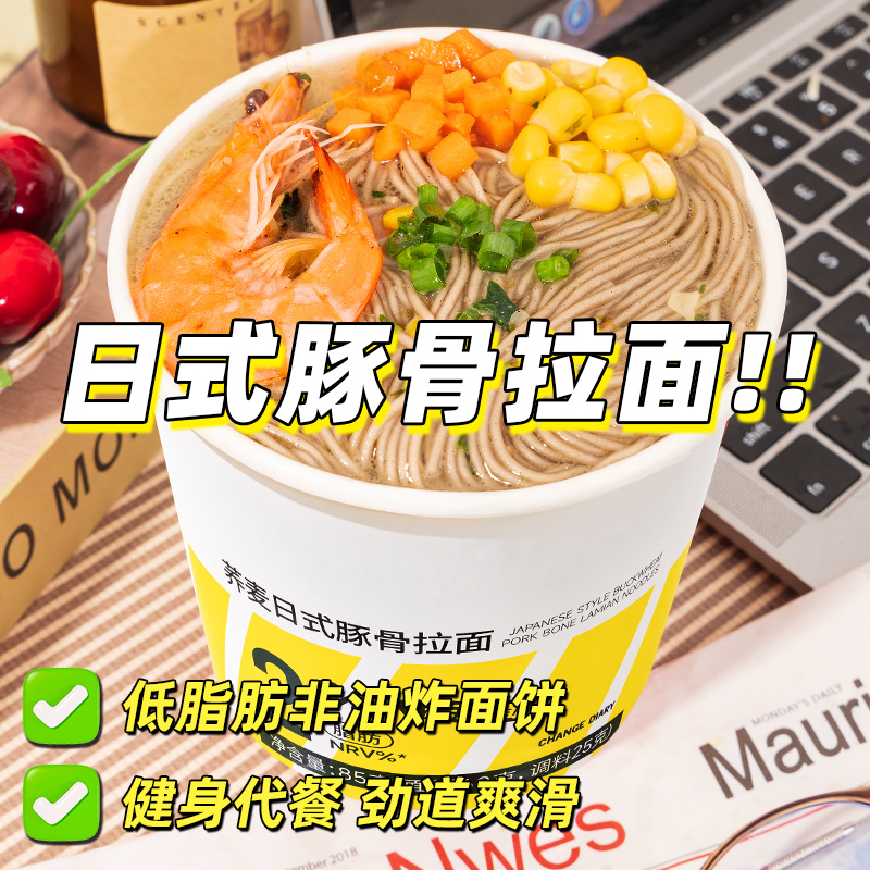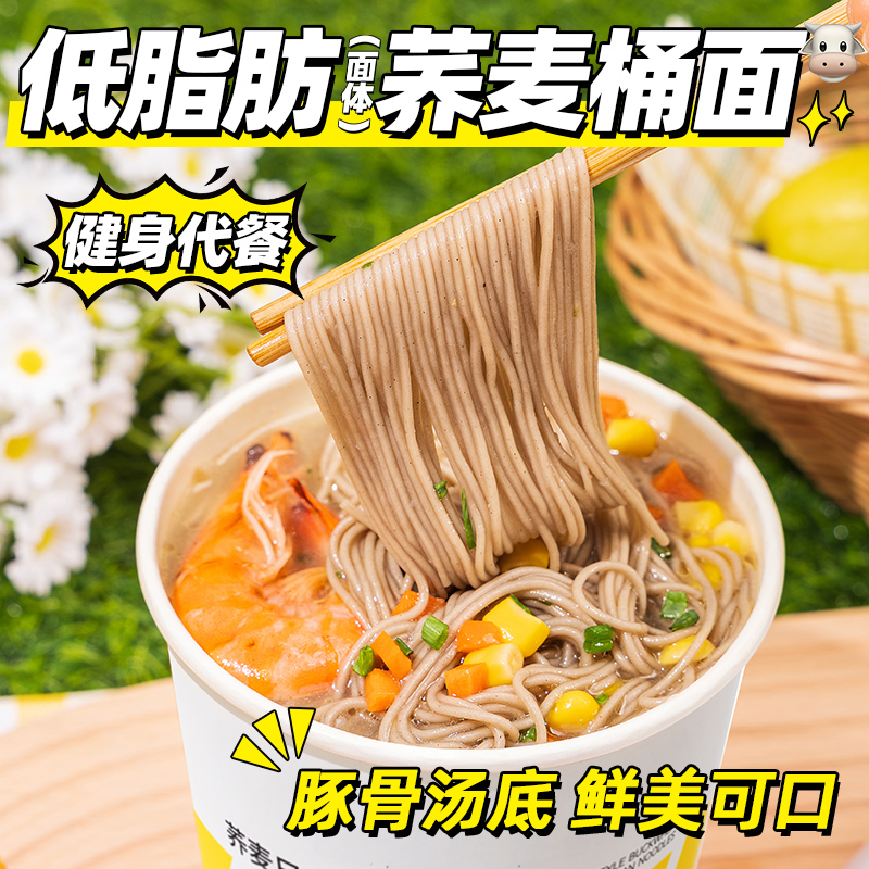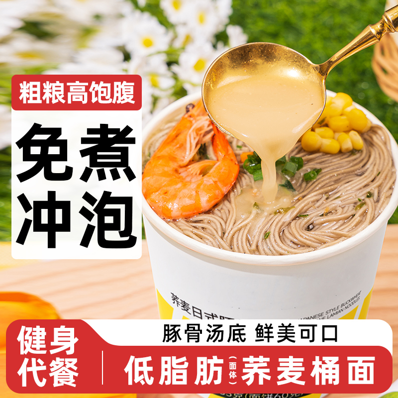 荞麦日式 方便面带调料包 豚骨拉面0免煮泡面脂肪全麦乔麦杂粮桶装