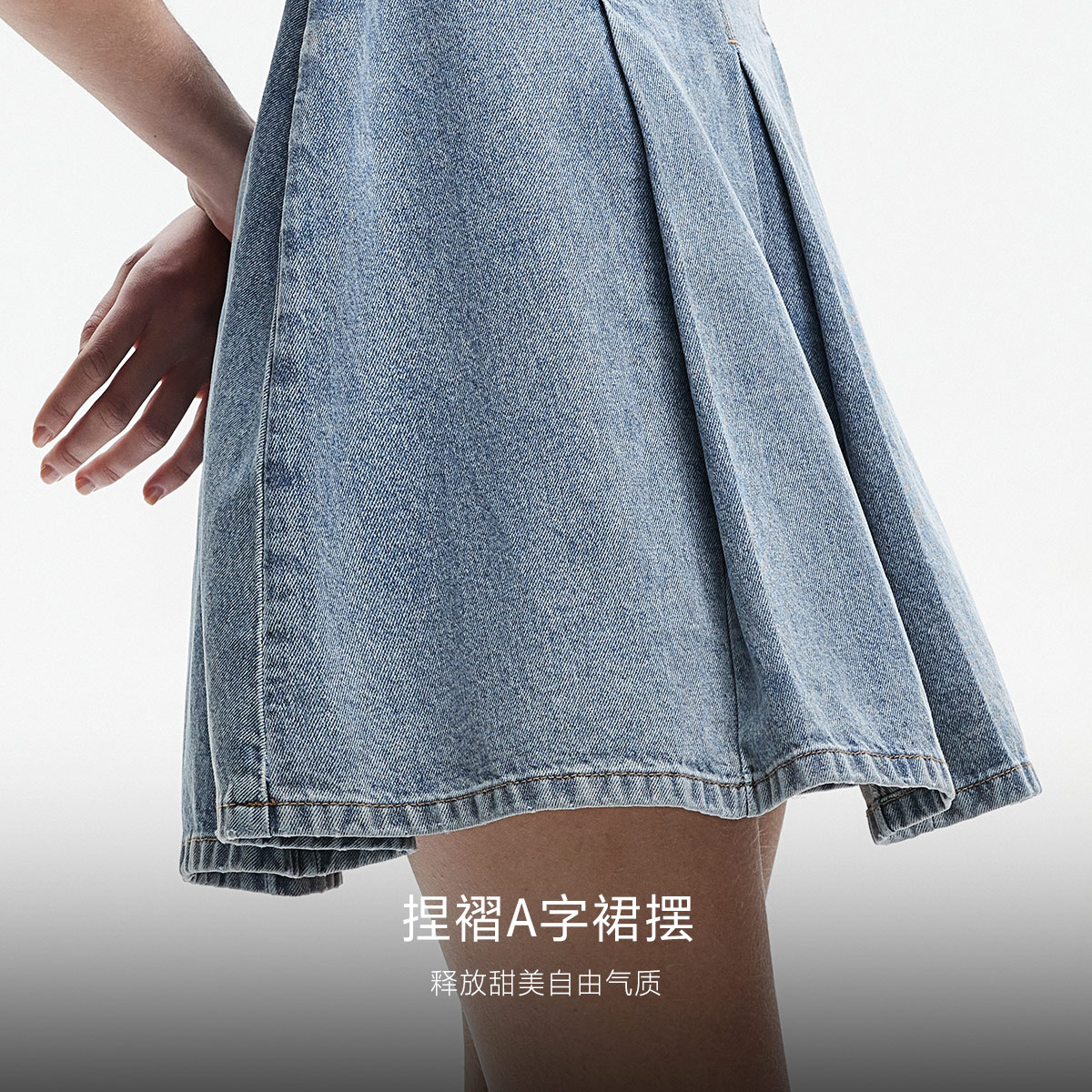 设计感小众收腰气质百褶短裙子 2025新款 美式 复古牛仔连衣裙女春季