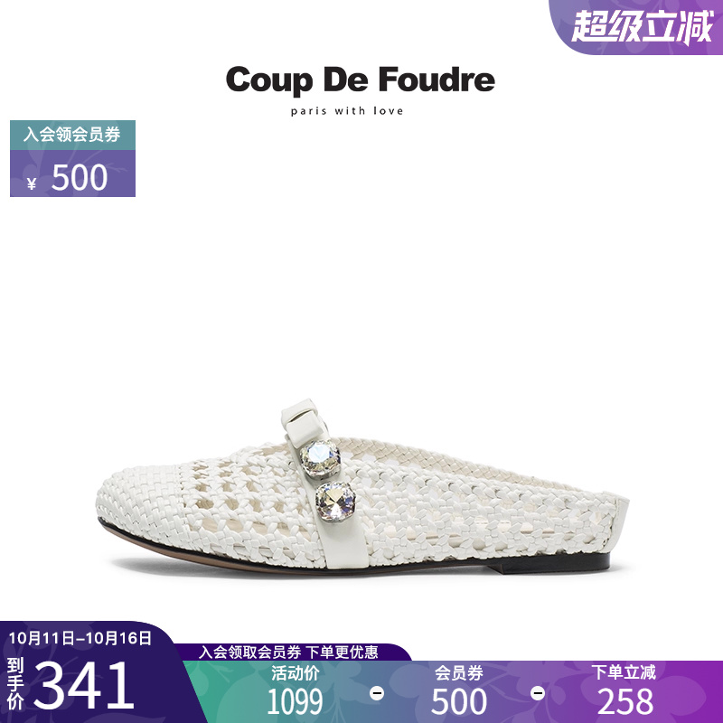 编织拖鞋 CDF女鞋 气质时尚 新款 水钻平底轻便外穿包头女拖 2025夏季