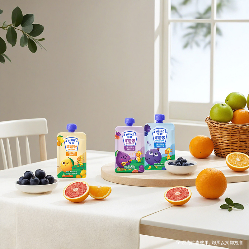 Heinz 果汁水果泥 亨氏3岁小孩饮品果泥果昔吸黑加仑蓝莓苹果袋装