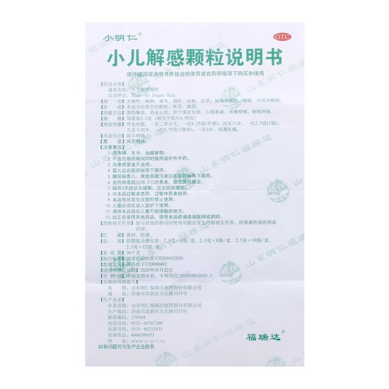 小明仁小儿解感颗粒2.5g 盒头痛咳嗽感冒发烧鼻塞咽喉肿痛 10袋