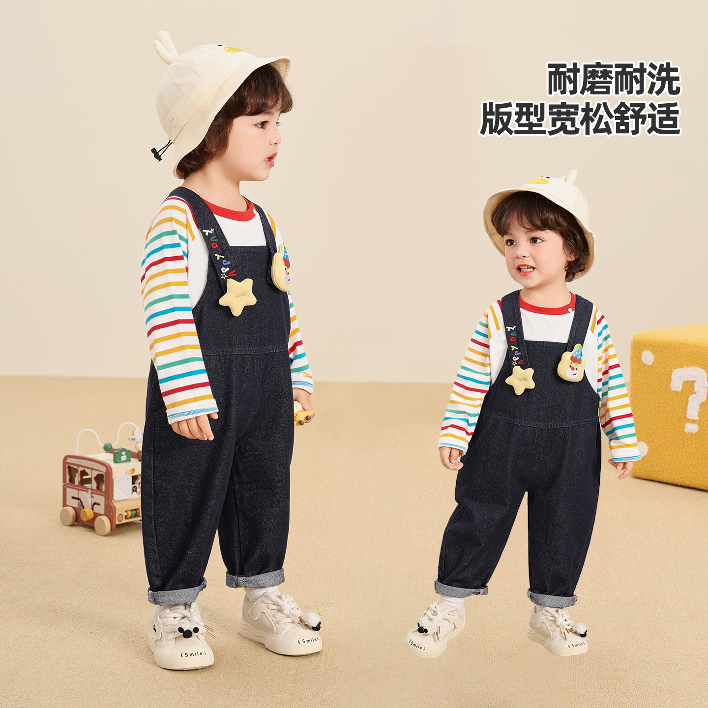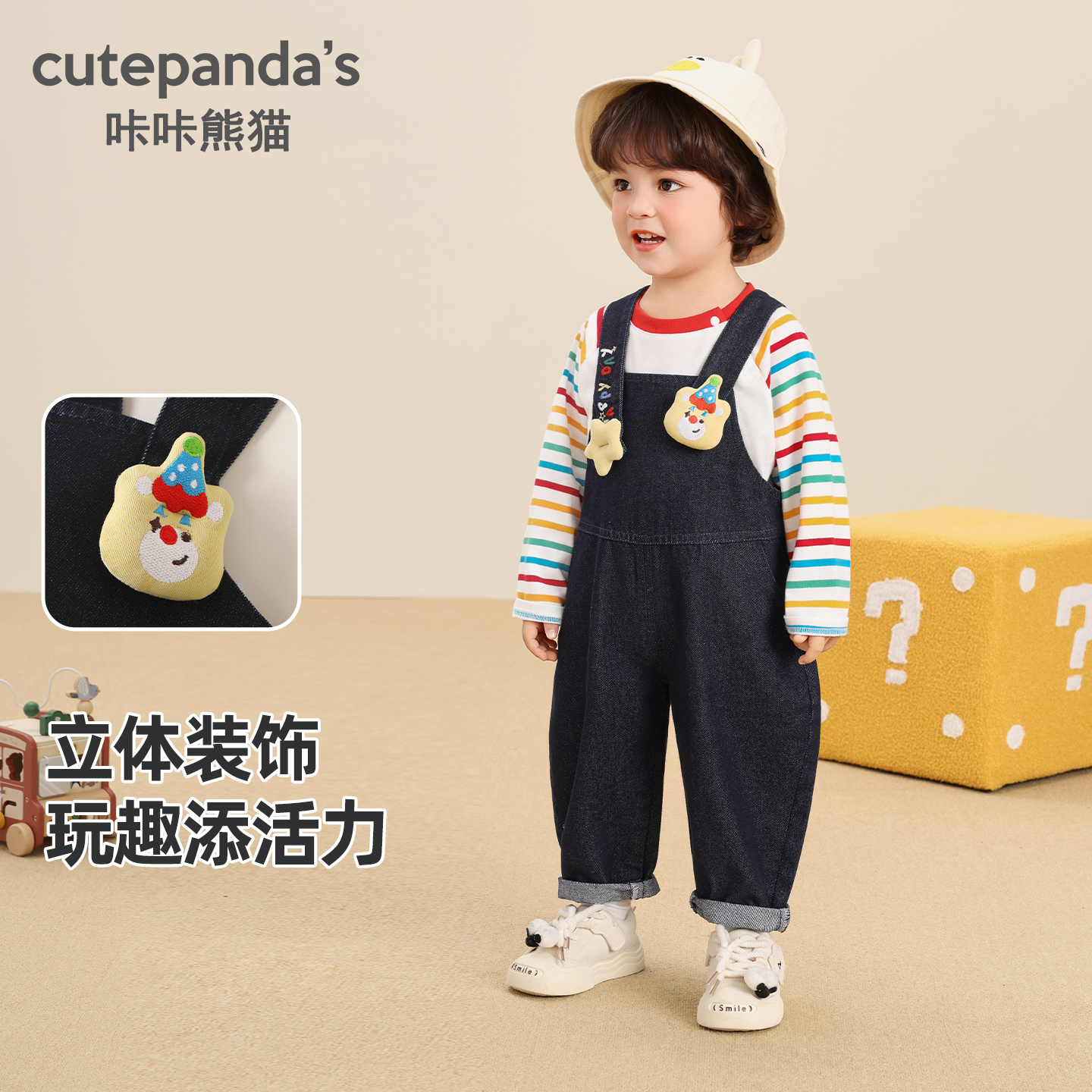 可爱长裤 男童时尚 秋款 童装 子潮 咔咔熊猫宝宝休闲牛仔背带裤 裤 秋装