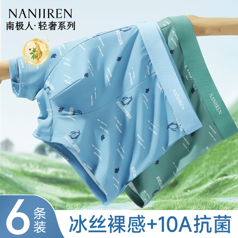 男士 2025新款 冰丝男生四角平角短裤 男款 头纯棉裆夏薄款 南极人内裤