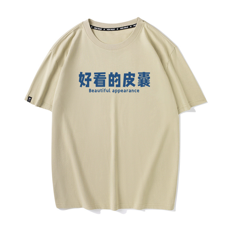 夏搞笑 棉半袖 秀洛好看皮囊有趣灵魂文字风短袖 t恤男女生情侣装