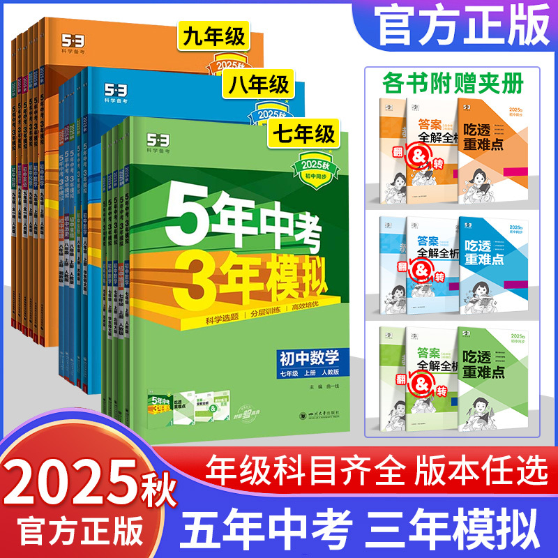 5年中考3年模拟53初一二初三同步练习册必刷 语文数学英语物理生物人教版 2026版 五年中考三年模拟七年级下册八九年级上册科学浙教版