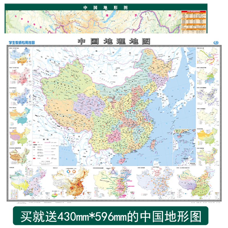 ?约1.2米×0.9米?初中 套装 中国地图出版 社 书籍 当当网 正版 中国地图挂图?学生教师专用地理全图