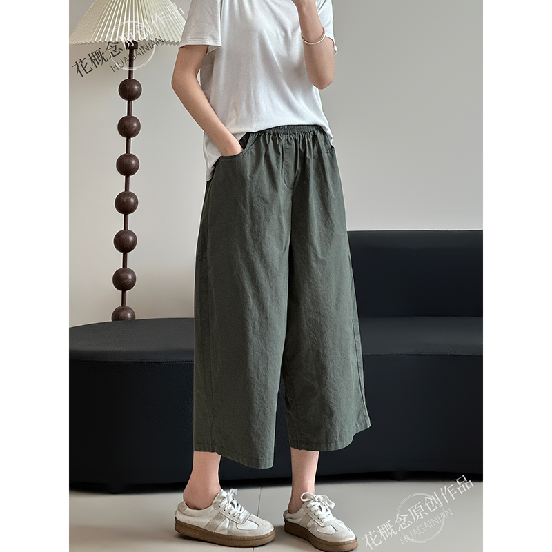 萝卜裤 花概念棉质松紧腰休闲八分裤 文艺时尚 哈伦裤 女 显瘦宽松韩版
