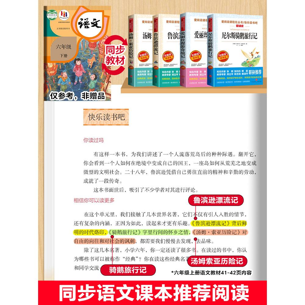 6下课外阅读 鲁滨逊漂流记汤姆索亚历险记骑鹅旅行记爱丽丝漫游奇境原著完整版 快乐读书吧六年级下册非必读课外阅读书正版 老师推荐