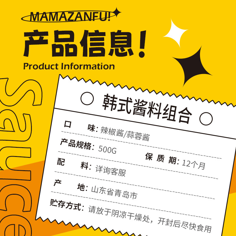 韩式 辣椒酱蒜蓉酱甜辣韩国拌饭酱低脂肪炒年糕烤肉石锅拌饭酱料0