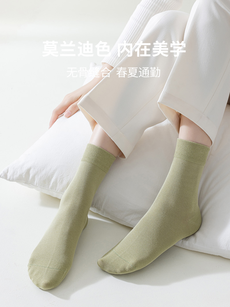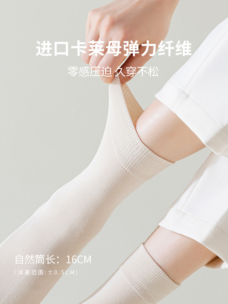 中筒袜防臭抗菌无骨松口月子长袜配小皮鞋 黑色袜子女纯棉夏季 薄款