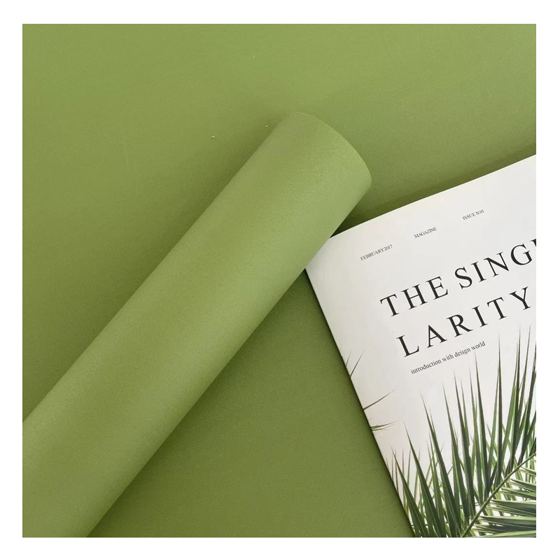 复古自粘墙纸牛油果绿壁纸橱柜门贴纸家具翻新防水防油衣柜子墙贴