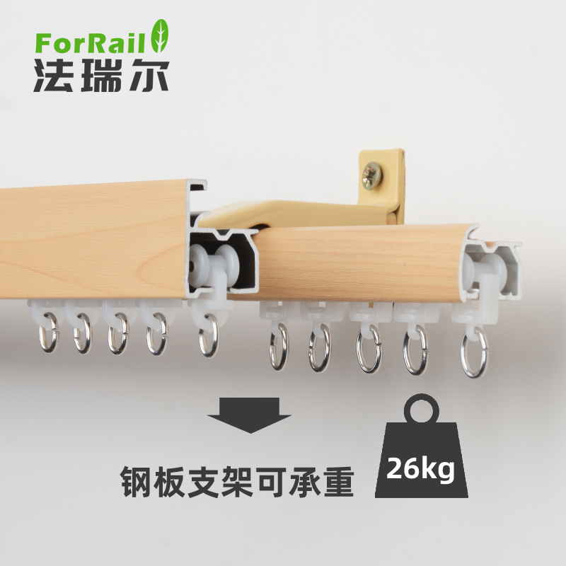 法瑞尔仿实木窗帘轨道铝合金加粗明装 盒 简约滑道直轨单双导轨侧装
