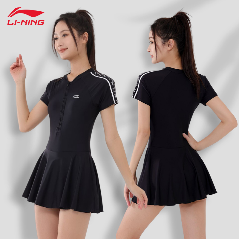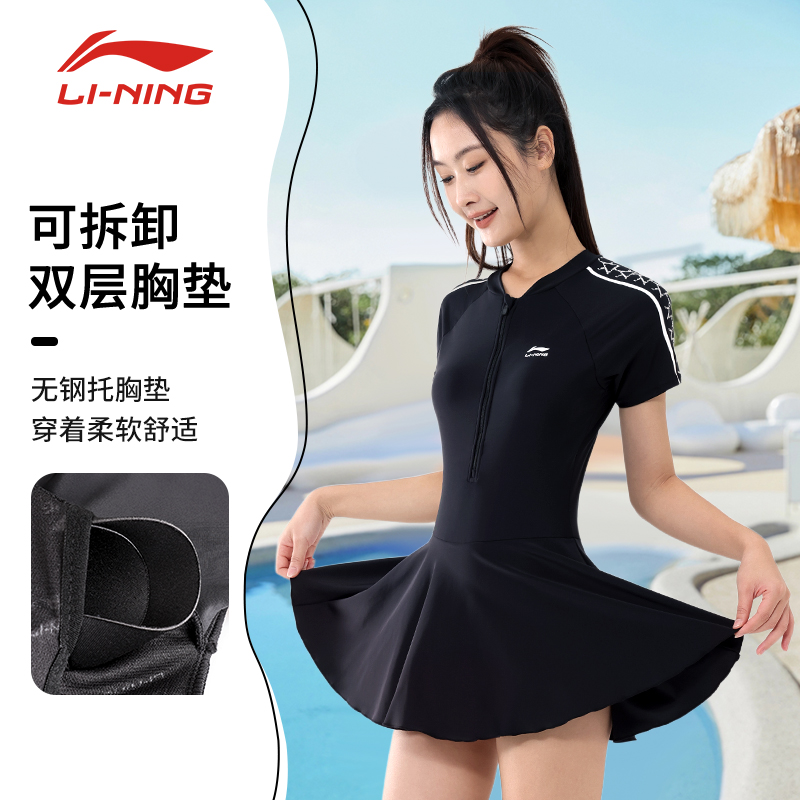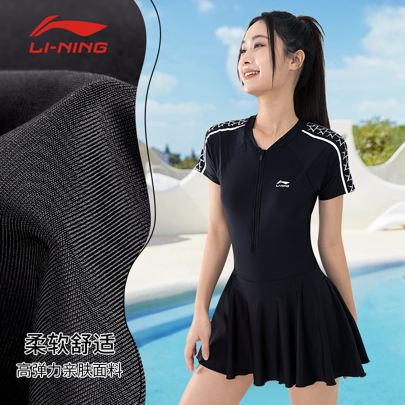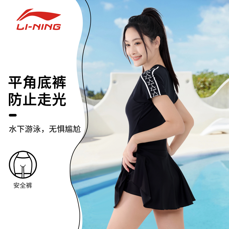保守短袖 李宁泳衣女2025新款 大码 连体裙式 游泳衣 温泉游泳海边夏季