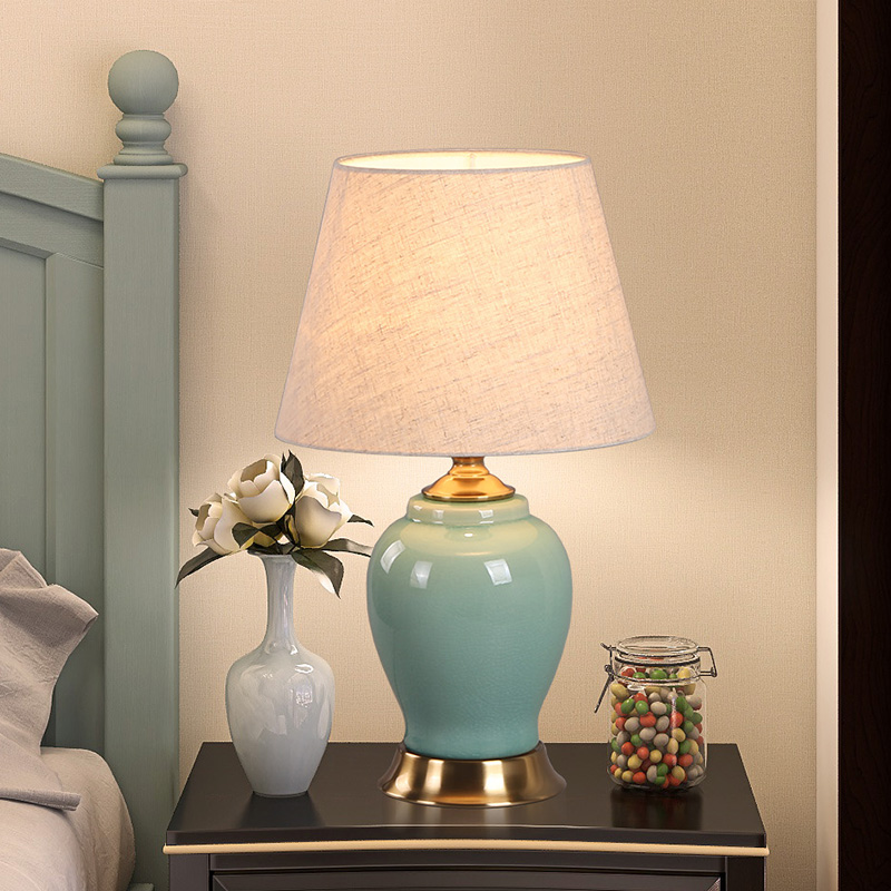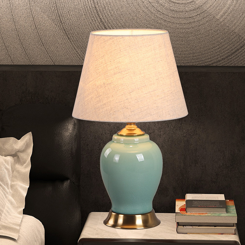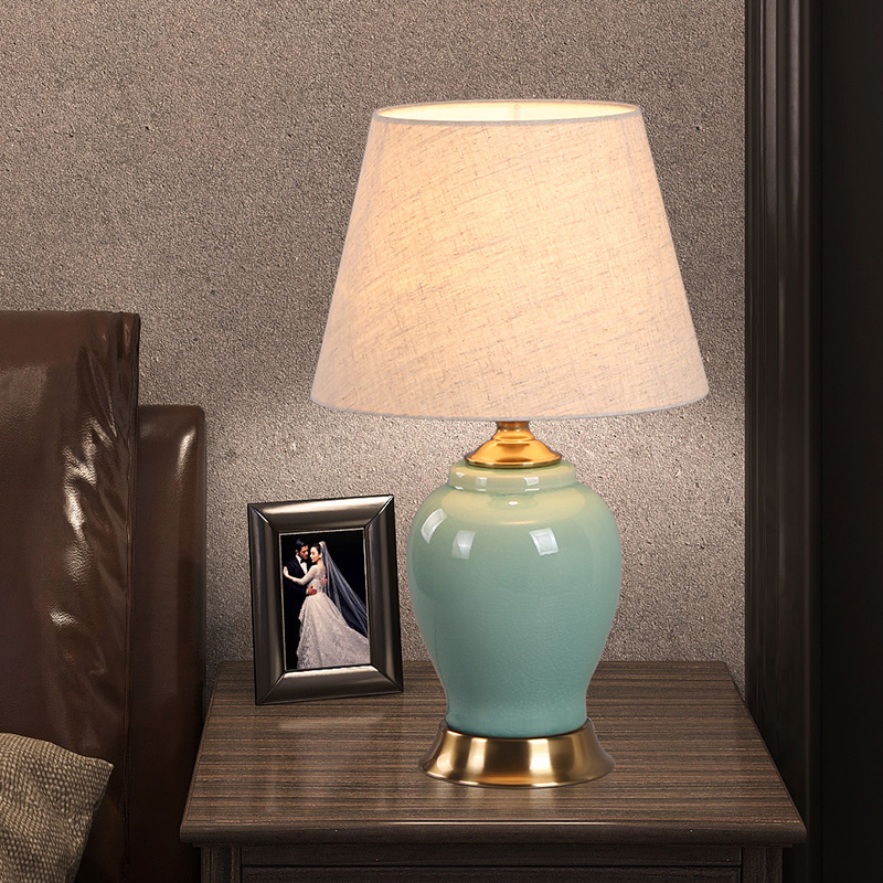 美式 饰灯饰简约高级感高颜值 复古轻奢陶瓷台灯床头卧室房间调光装
