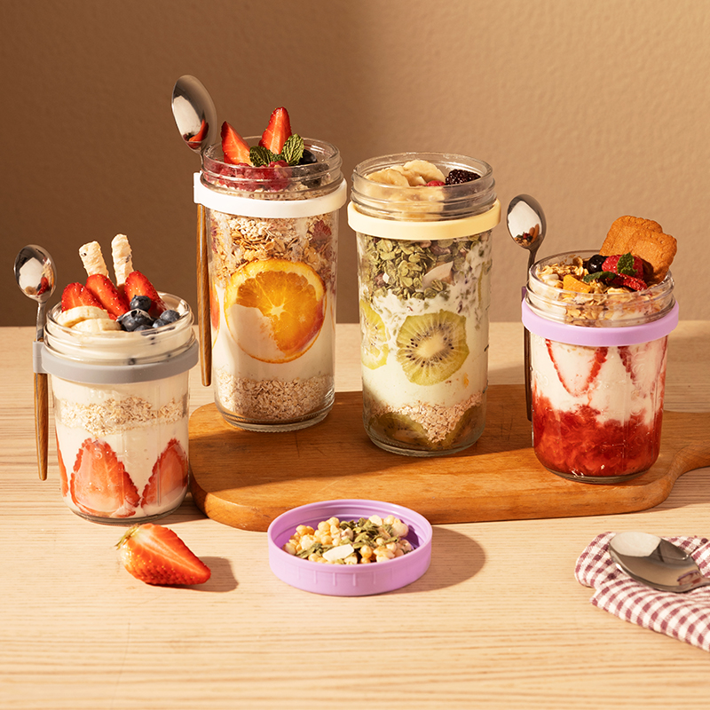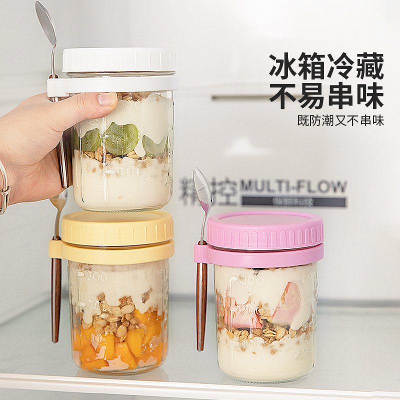摩登主妇隔夜燕麦杯带盖勺奶昔早餐杯酸奶碗外带麦片杯水果便当盒