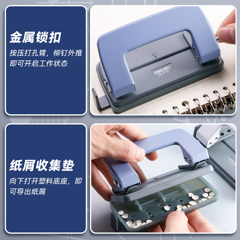 得力双孔打孔器圆环孔打孔机小型手动打眼器办公凭证文件纸张订本打洞器多孔装 订机活页本夹两孔打洞机打书洞
