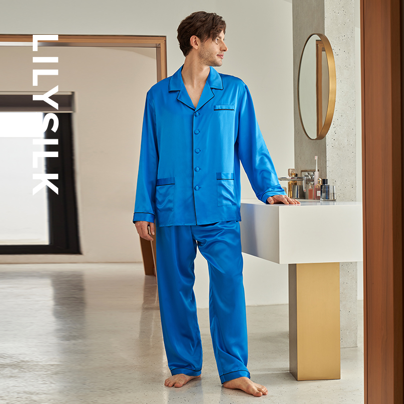 大童学生长袖 夏季 空调家居服薄款 棉绸睡衣男士 男童 青少年绵绸套装