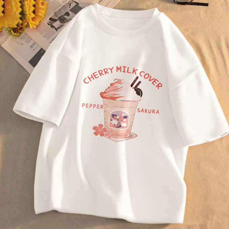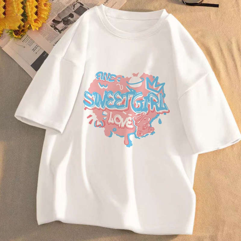 宽松圆领洋气印花百搭原宿风上衣潮流女装 学生韩版 t恤女夏季 短袖